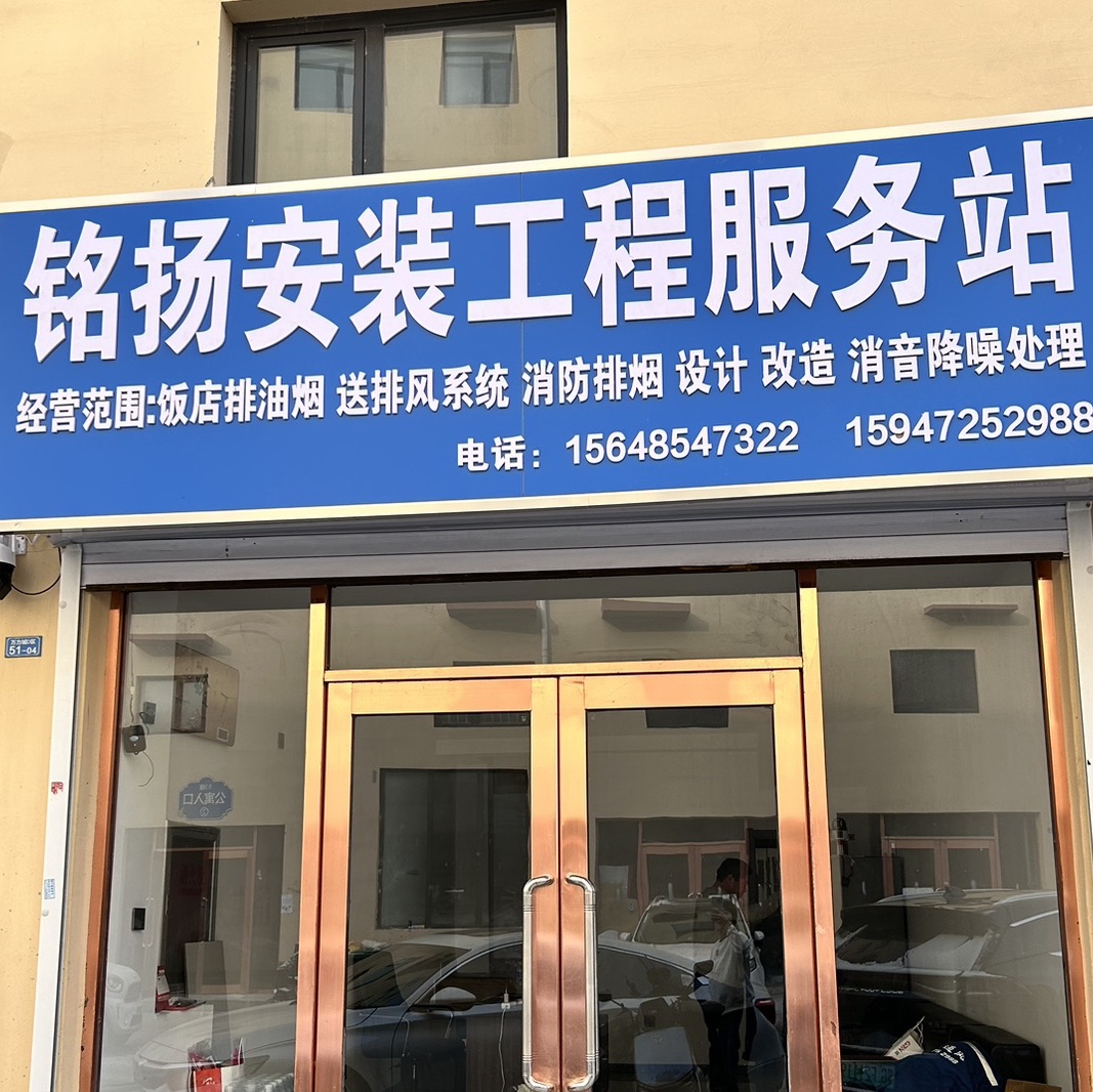 江艳艳广告圈11-3通辽铭扬安装工程部 专业安装通风管道 厨房排油烟 消防排烟 油烟净化器 更换各种风机